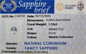 Dazzle with timeless elegance. This 1.12 ct light blue Ceylon sapphire is a natural masterpiece, GGTL certified and expertly cut into a brilliant oval. Its near-colorless sparkle and eye-clean clarity shine in a refined mixed cut, enhanced by subtle heat treatment to amplify its radiance. Measuring 6.65 x 5.36 x 3.93mm, this exquisite gem is perfect for engagement rings, fine jewelry, or an heirloom that will be cherished for generations. A rare treasure that captures nature’s finest artistry.